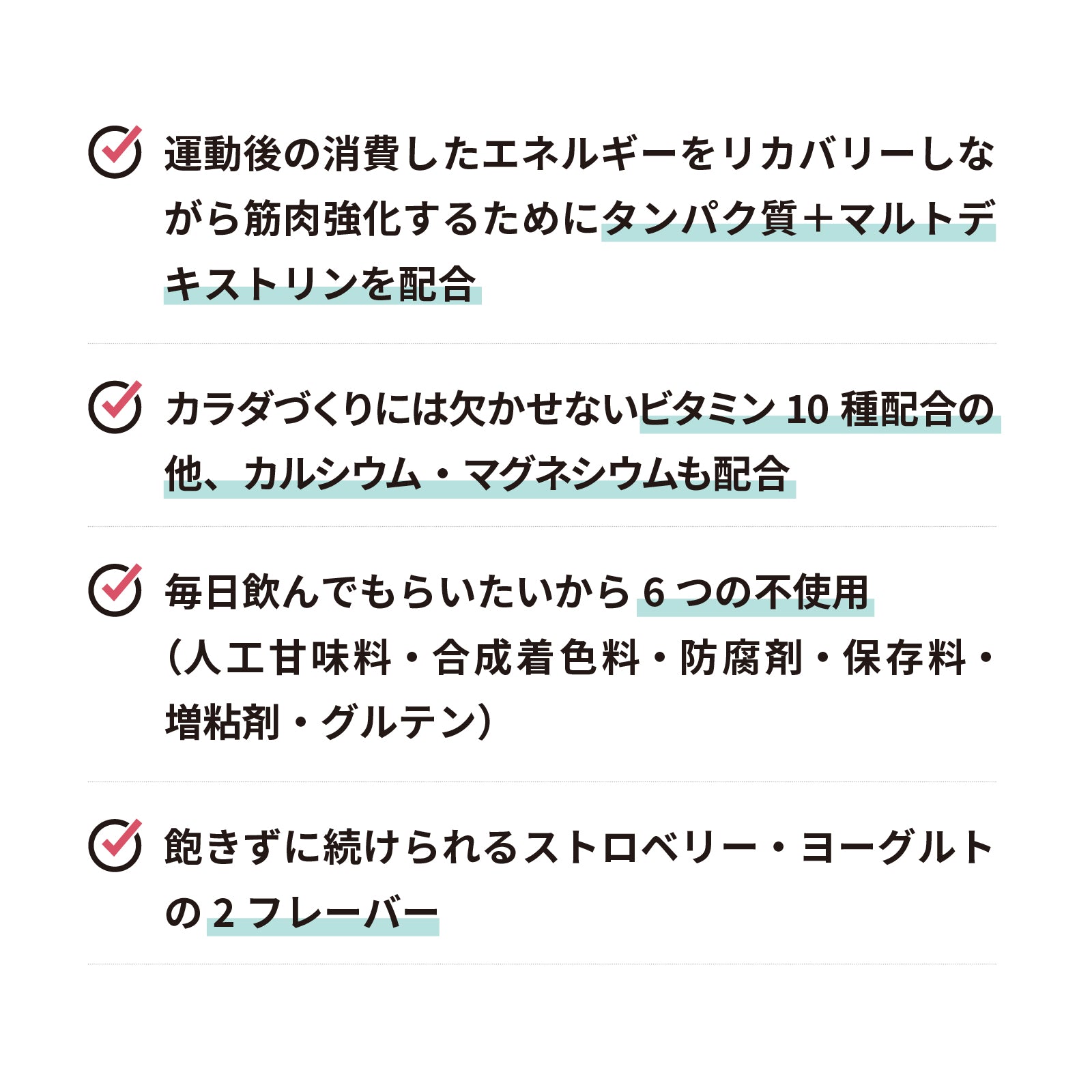 「朝食」「間食の代わり」「就寝前」「トレーニング前後」などをおすすめしていますが、目的に応じて適切な量をお好みのタイミングにお飲みください。